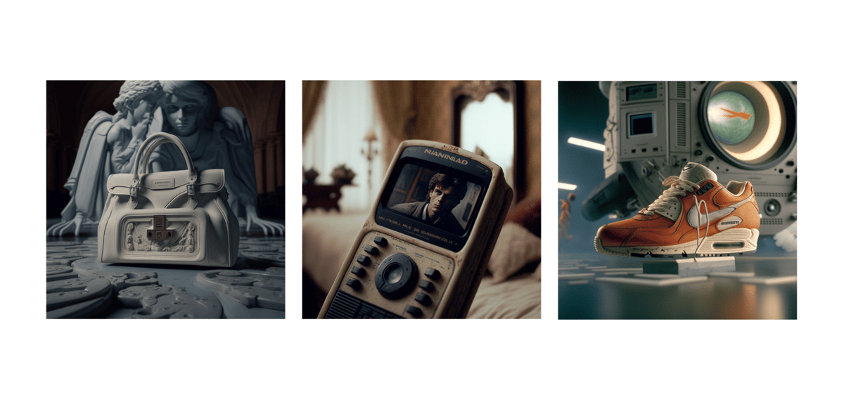 Midjourney - A Text-to-Image AI that has come on leaps and bounds, in V4, it has become the first AI only aesthetic, it’s immediately recognisable. Accessible through a discord bot, it has a thriving community and you get to see what others are making, and what they’re asking the AI. Here's a selection of product imagery I created as part of my on going exploration